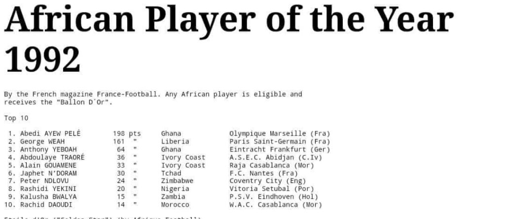 And of all those great names he was the only African player from the English premier league and the youngest until this very day as he was still a teenager. More ought to be done to improve our record keeping as this is pivotal